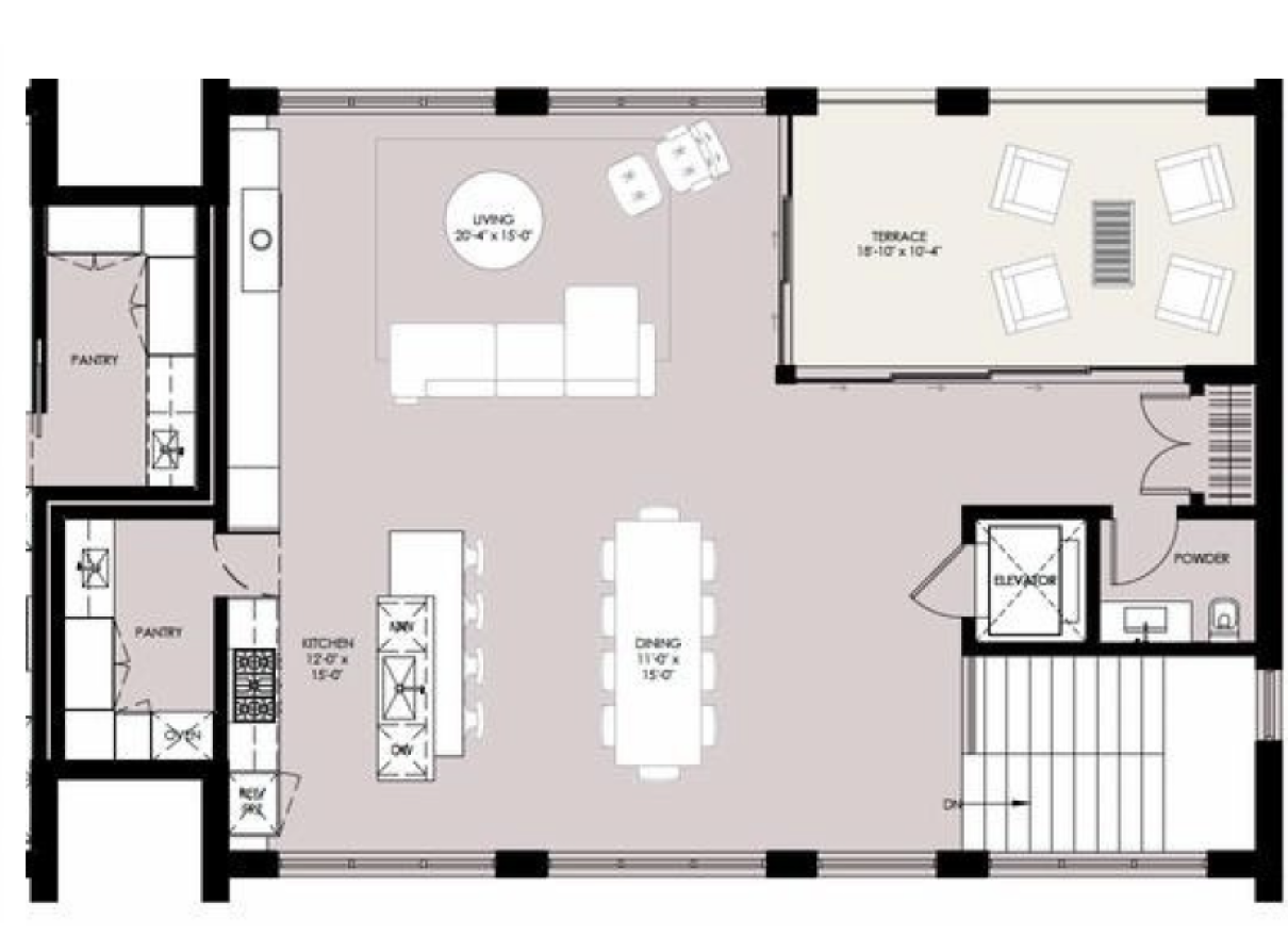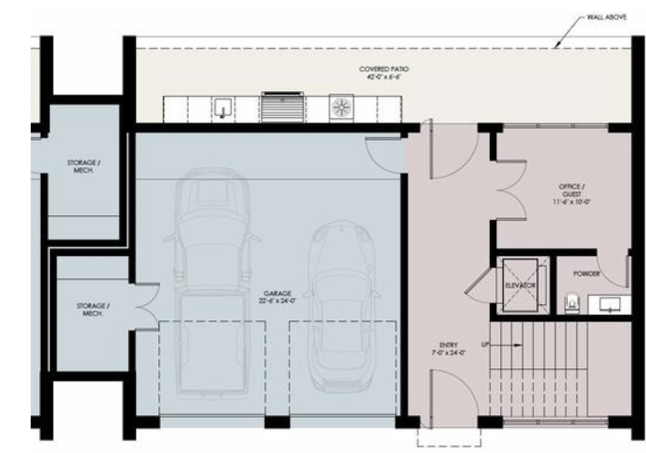 The largest home in the collection, Residence One offers three full bedroom suites plus a flex space, ideal for guests or a home office. A top-floor media room opens to an airy great room and kitchen made for entertaining.